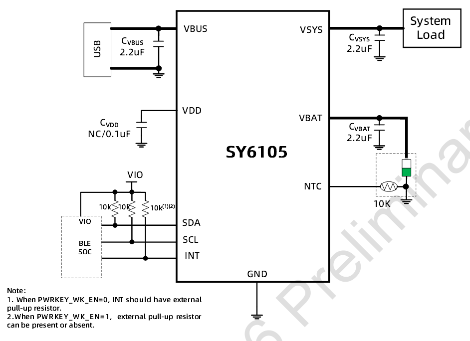 The SY6105 can automatically complete charger phase include pre-charge, fast charge, charge termination. Also monitor battery temperature during charging. Power path management will provide higher priority system load even with depleted battery.